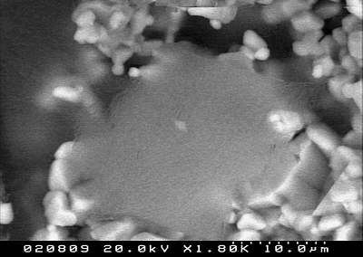 In höherer Vergrößerung sind diese Strukturen auch im RE-Bild erkennbar. Die glasig