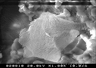 zeigt einen fein strukturierten "Salz-See" im Porenraum.