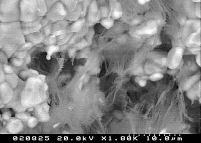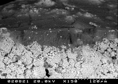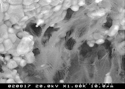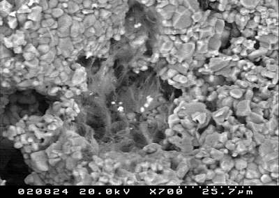 Auch im Porenraum unterhalb der Oberfläche gibt es kaum Veränderungen. Das linke Bild