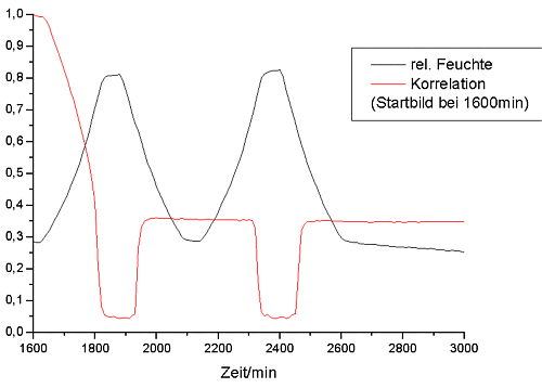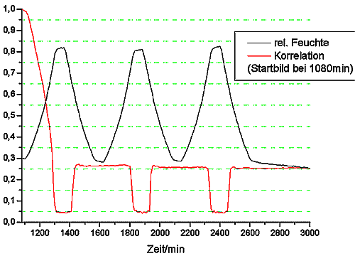 Wird dann die Feuchtigkeit abgesenkt, verbleibt der Korrelationskoeffizient