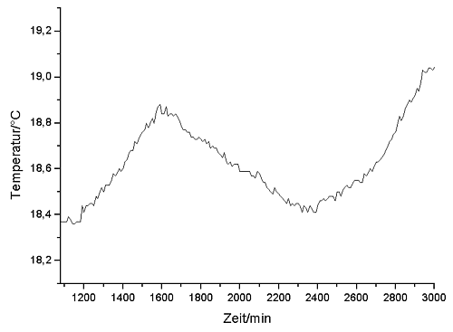Die Temperatur schwankt während der Messung aufgrund von Tages-