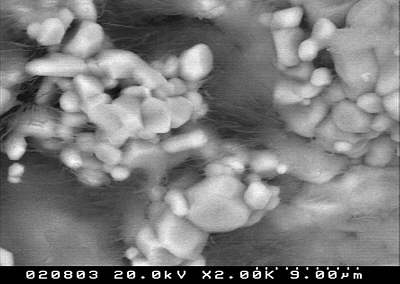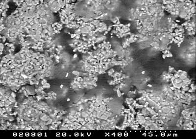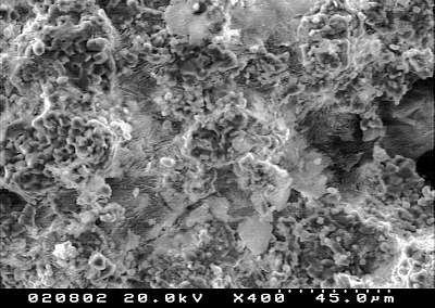 Im Sekundärelektronenbild (SE) erkennt man allerdings bereits bei dieser Vergrößerung,