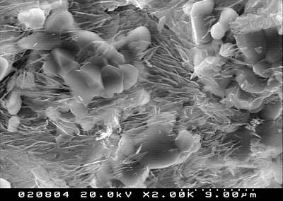 zeigt einen fein strukturierten "Salz-See" im Porenraum.
