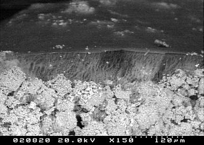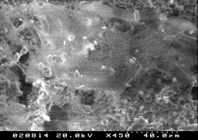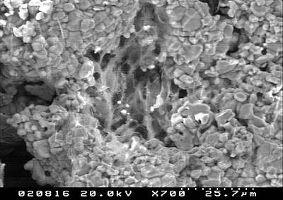 Auch im Porenraum unterhalb der Oberfläche gibt es kaum Veränderungen. Das linke Bild
