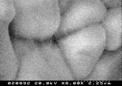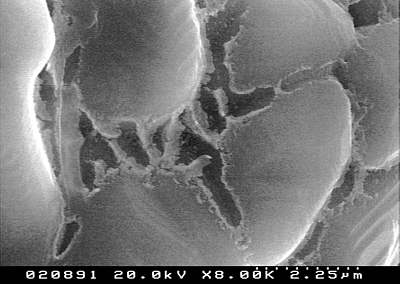 In der SE-Abbildung der gleichen Stelle dagegen wir der Lösungsfilm deutlich. Die Strukturen