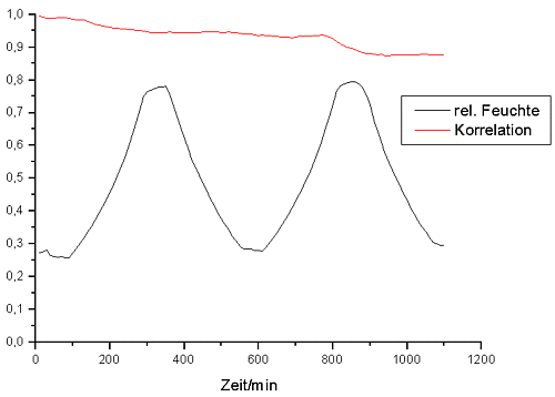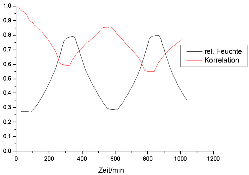 Wird dann die Feuchtigkeit abgesenkt, verbleibt der Korrelationskoeffizient