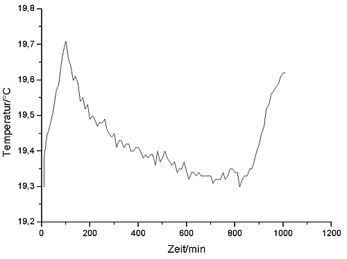 Bei der Darstellung der Temperatur im Verlaufe des Experiments erkennt