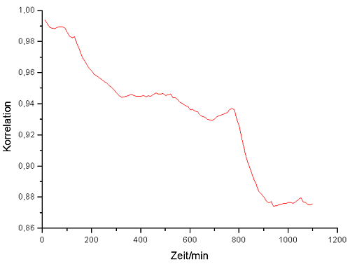 beaufschlagt wurden, zeigen ein deutlich stärkeres Absinken des Korrelationskoeffizienten